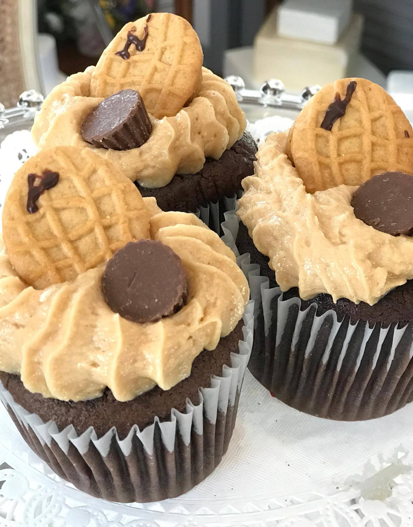 Nutter Butter; Chocolate Cake with Peanut Butter Icing Topped with a Cookie and Peanut Butter Cup
